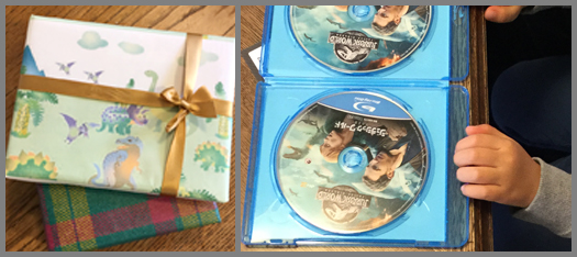 包装紙を買い忘れたので、恐竜のフリー背景をダウンロードして作って印刷、包装。