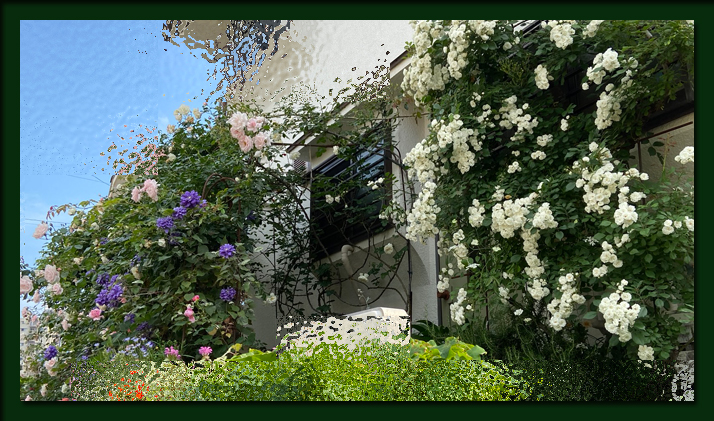 毎年見せて頂いているsilkyさん宅の薔薇もあっという間に後半になってしまいましたが、楽しみにしているアルバ・メイディランドが満開になっていると知って、相方とsilky家の前を通るコースに。(^^)