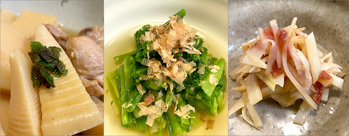 午前中に買い物に行ったスーパーで、相方が選んだ食材は「筍・セリ・鰤カマ」