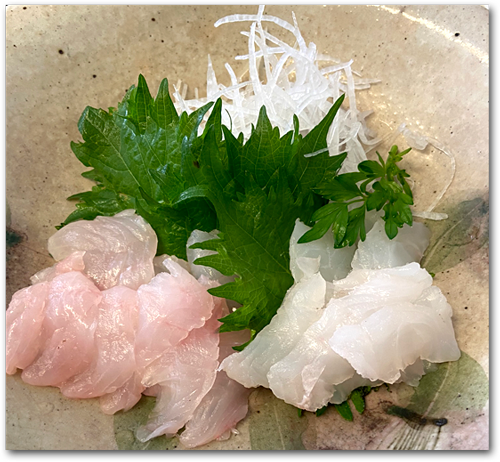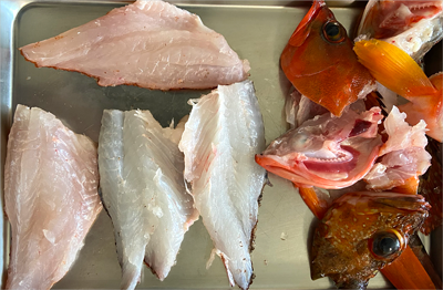 息子が釣って来てくれたアカハタとカサゴは相方の希望でお刺身とお吸い物に。