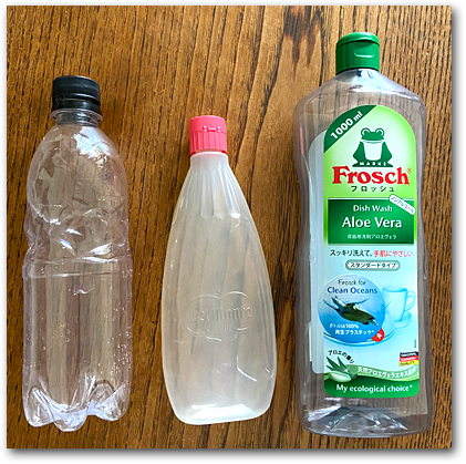 我が家には孫たち3人の工作用に空き容器をいろいろ置いてあるのです。