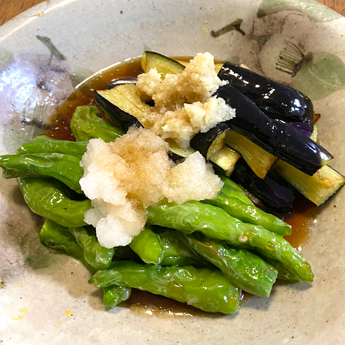しし唐には大根おろし、茄子には生姜を乗せて。