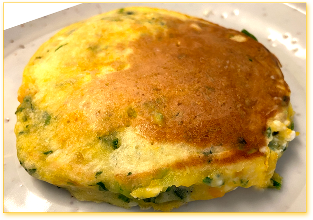 初日はかぼちゃ・ほうれん草・豆腐の入ったパンケーキ。