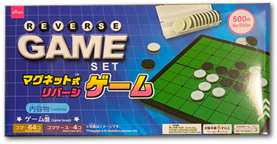 先日、探し物があってダイソーに行ったら、ダイソーには用事のない相方が待っていてくれる間に見つけたのが「オセロ」・・・買いたかったマグネット版。