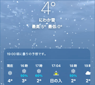 今は午後3時過ぎですが、空が薄暗く重くなってきました、東京西部もいよいよ雪降りでしょうか?