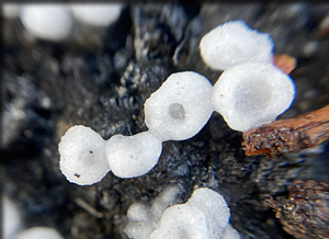 今日のウォーキングで「どこかに霜は?」「どこかに水滴は?」と探す私の眼に白いものが・・・「あっ雪!」と思わず駈け寄ったら・・・・