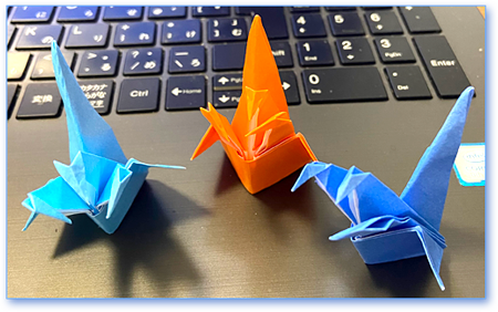 先月娘の子Kが来たとき、娘と3人で折り紙で遊びました。