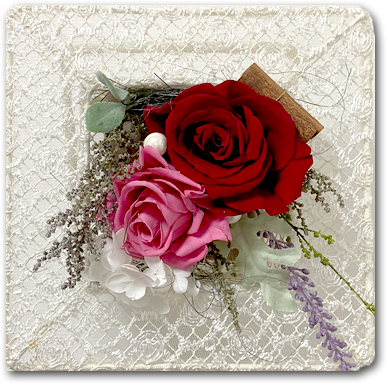 先日、ご自身で作られたプリザードフラワーの壁掛けをプレゼントして頂きました。