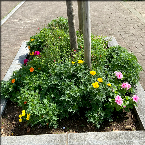 迷惑台風でしたが、市の花壇の水やりだけは助かりました。