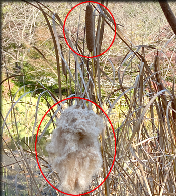 晩秋にはガマの穂がほぐれて綿毛の着いた種子が大量に飛散するそうです。