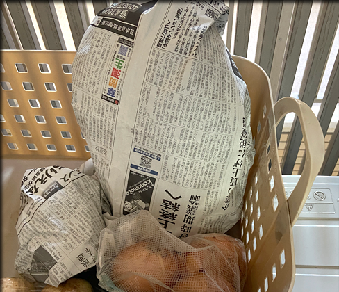 一つだけ残っていたパソコン部屋のカーテンと麻布で縫ったカフェカーテンを洗濯、北側の窓の外のクーラーの室外機上の「野菜置き場」の掃除。