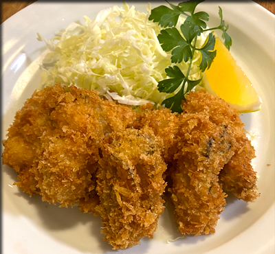 牡蠣は割合大きかったのですが、牡蠣フライはまずまず。アヒージョの方が美味しかったです。筋子をほぐして醤油漬けにしたのは気に入りました、残りは冷凍庫。