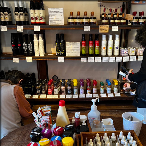 相方が初めての谷中銀座にも少し足を運んでから(夕やけだんだんでは外国の撮影隊が撮影中でした)オリーブオイルのティスティングが出来る「おしおりーぶ」へ。