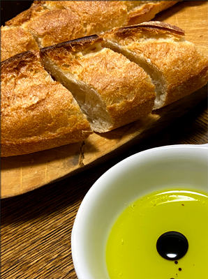 オリーブオイルにバルサミコ(↑写真左)でバケットが美味しかったです。