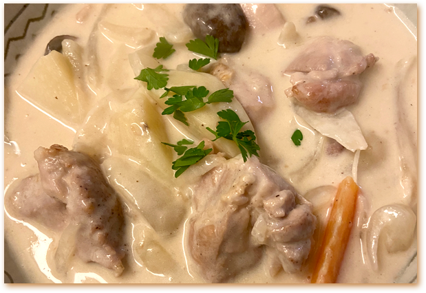 先日、boulangerieさんのブログでダニエル氏の「ルーを使わないクリームシチュー」を拝見、うわー食べたいとなりました、これなら相方にもいいかもしれないと。^^