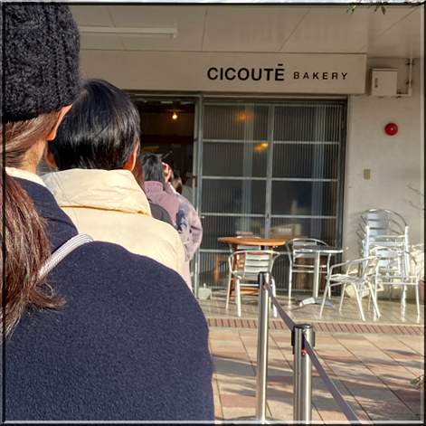 パンは・・・チクテベーカリー。土曜日に行ったのが大間違い、午後2時は平日なら並んでも3~4人なのに、今日のは折り返すほどの行列で、寒風の中一時間弱。^^;