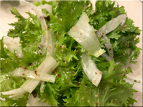 サラダは・・・わさび菜とセロリと玉ねぎ。
