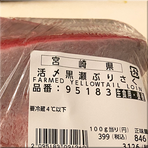 コストコで生食の「活〆:黒瀬鰤」の柵が売っているのを始めて見ました、夜は鰤しゃぶに。^^ 養殖でした美味しかったです。
