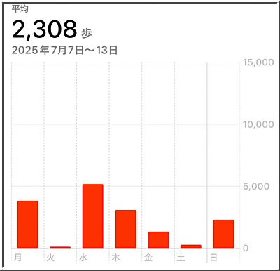 その一週間の歩数計がこんな感じでした、ウォーキングはずぅーっとご無沙汰、マクロレンズをどこに置いたか探す始末でした。(面目ない)