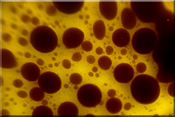 相方がポークステーキを焼いてくれた時、バケットに付けるオリーブオイルにはバルサミコをちょっと垂らすのですが、バケットに付けたらこんな模様↑に広がり、相方が「これマクロレンズで撮ってみたら」と言うので、ワイン飲んでるのになぁと思いつつしぶしぶ撮りました。(笑)
