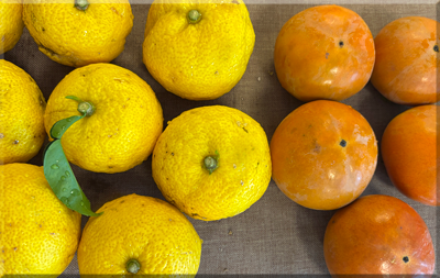 菊芋・むかご・大きな柚子・小さな富有柿