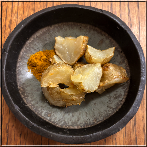 素揚げしてカレー塩で・・・中がトロっとしていてこれまた美味しい。
