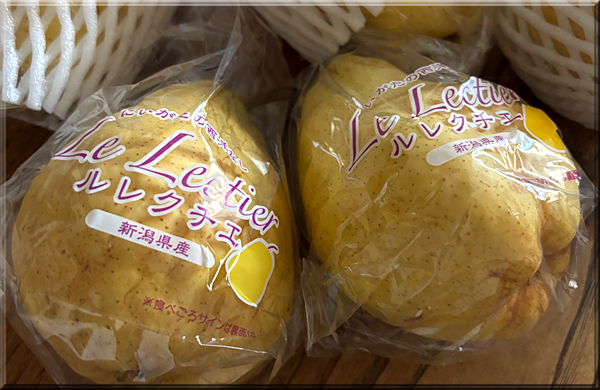 新潟からお土産に今年も洋梨のルレクチェを頂いきました、やっぱり美味しい。